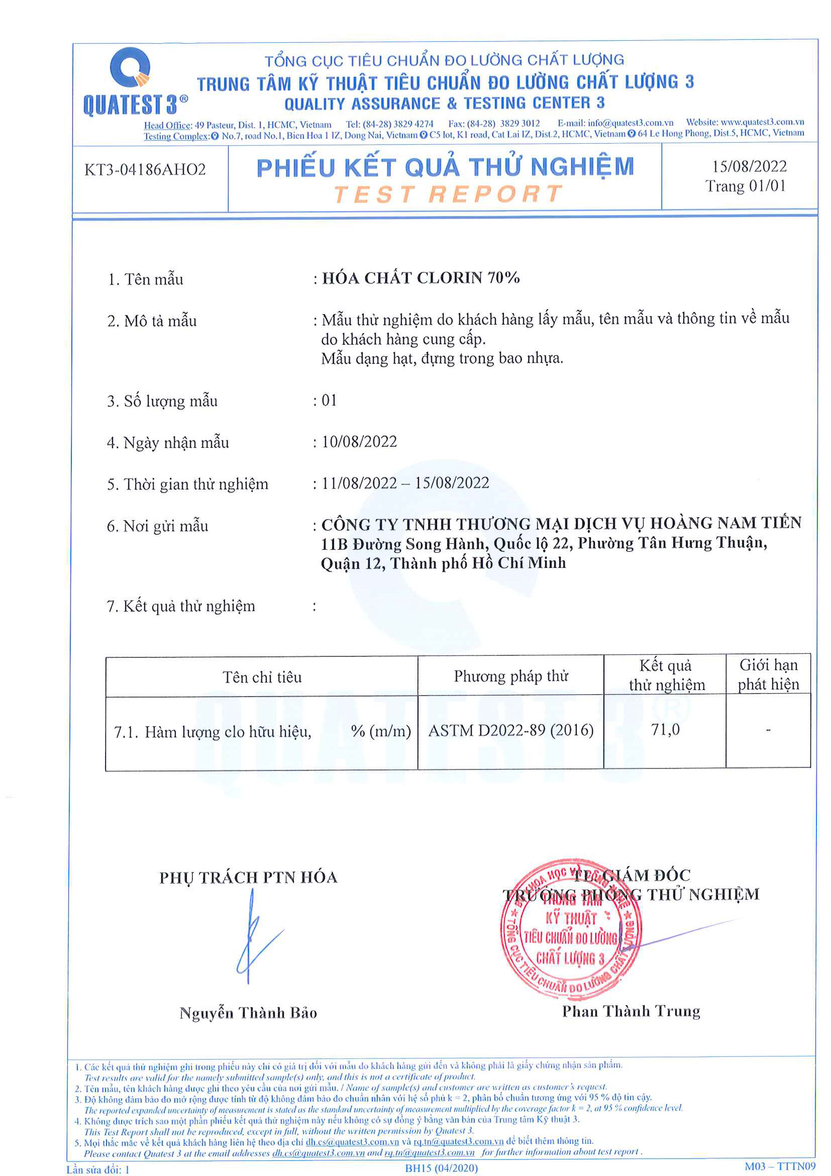 Hoàng Nam Tiến - Nhà Phân Phối hóa chất miền Nam Tên thường gọi: Clorin/ Chlorin