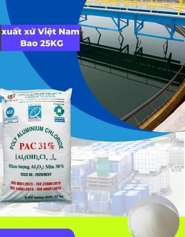 PAC là một polymer vô cơ đa năng được tổng hợp bằng nhôm (hàm lượng nhôm khoảng 28-32%) clorua, nhôm hydroxit, alumin hoặc các hợp chất nhôm vô cơ khác với axit clohydric.